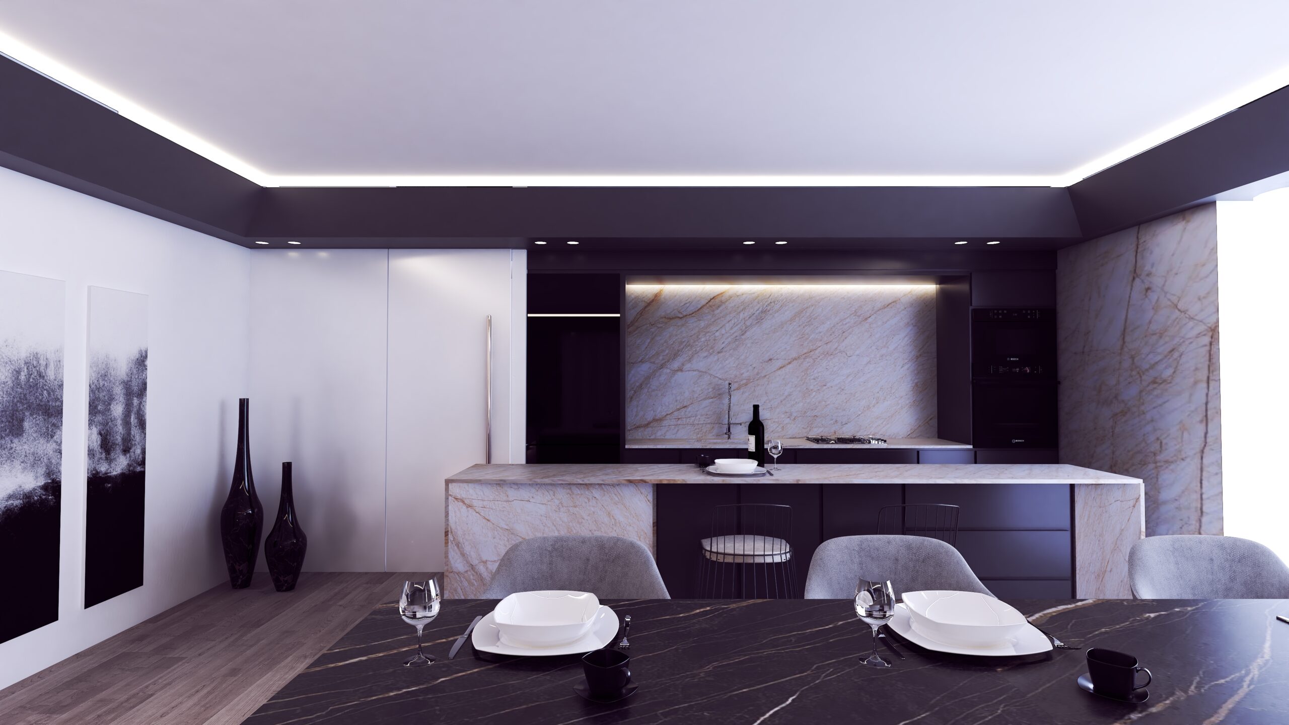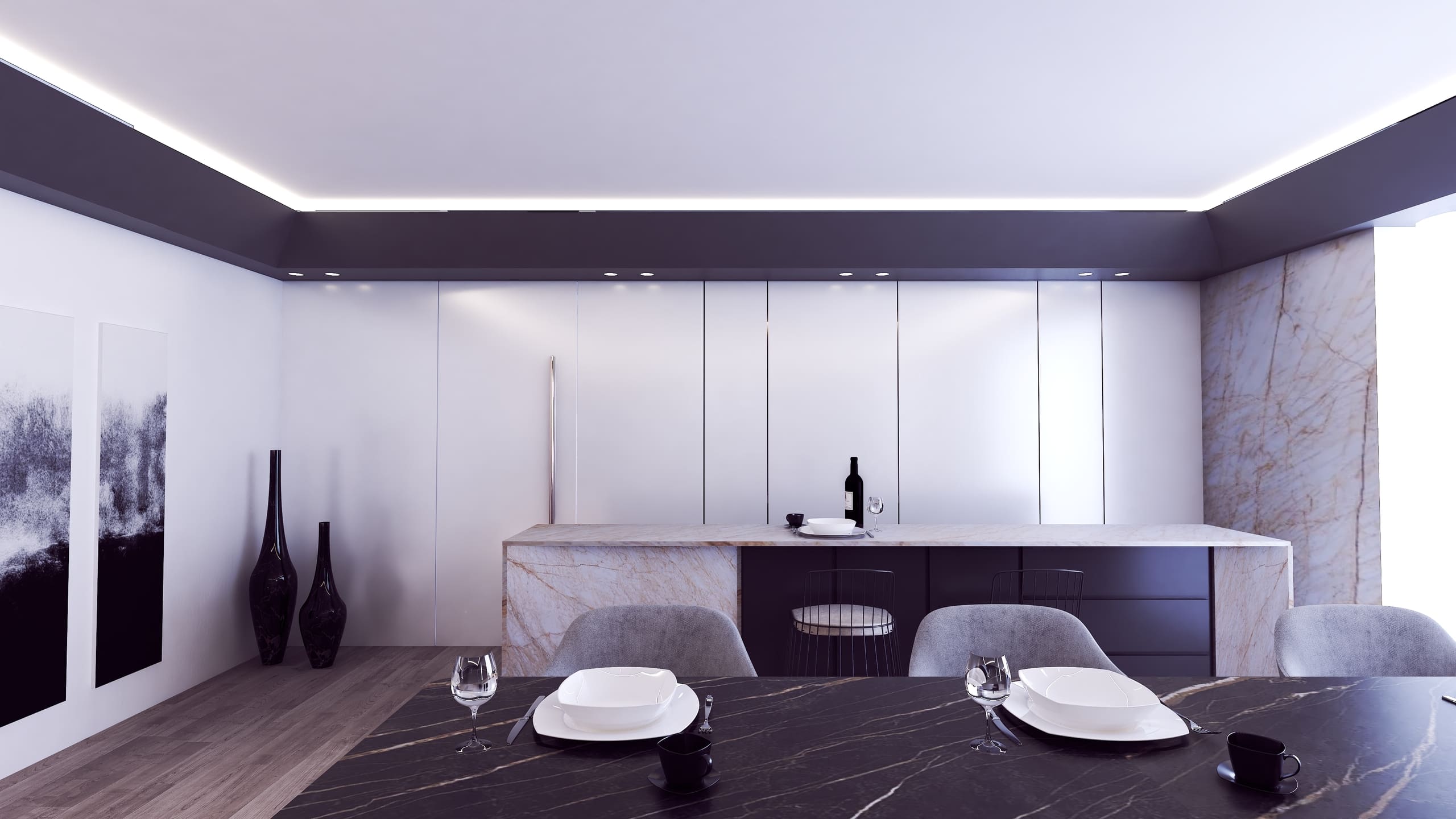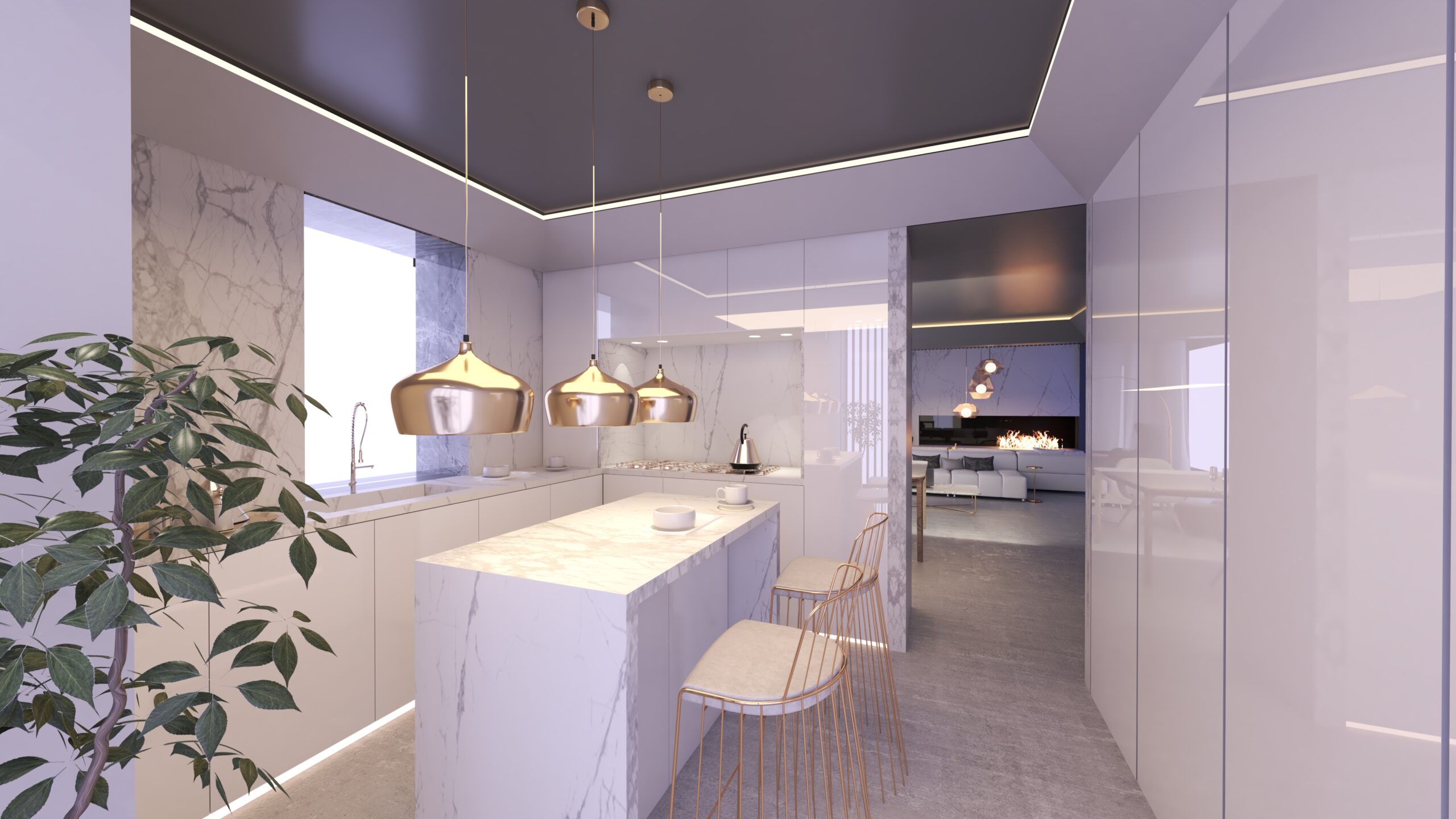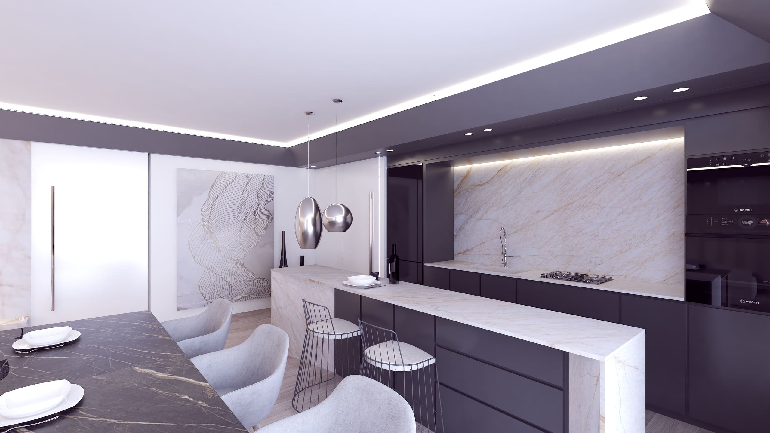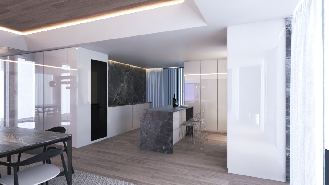 Prisma’s living spaces are designed for effortless elegance and functionality. The open-plan layout seamlessly connects the living room and kitchen, creating a bright and inviting atmosphere. With high-end finishes, abundant natural light, and spacious design, this central hub is perfect for both relaxation and stylish entertaining.